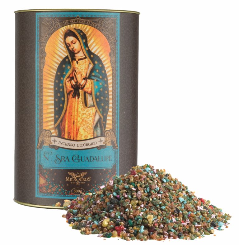 A barrica contém 500g do incenso Nossa Senhora de Guadalupe. A Milagros criou este incenso para honrar o amor da mãe de Deus por nós e comemorar a sua aparição em Guadalupe, no México.