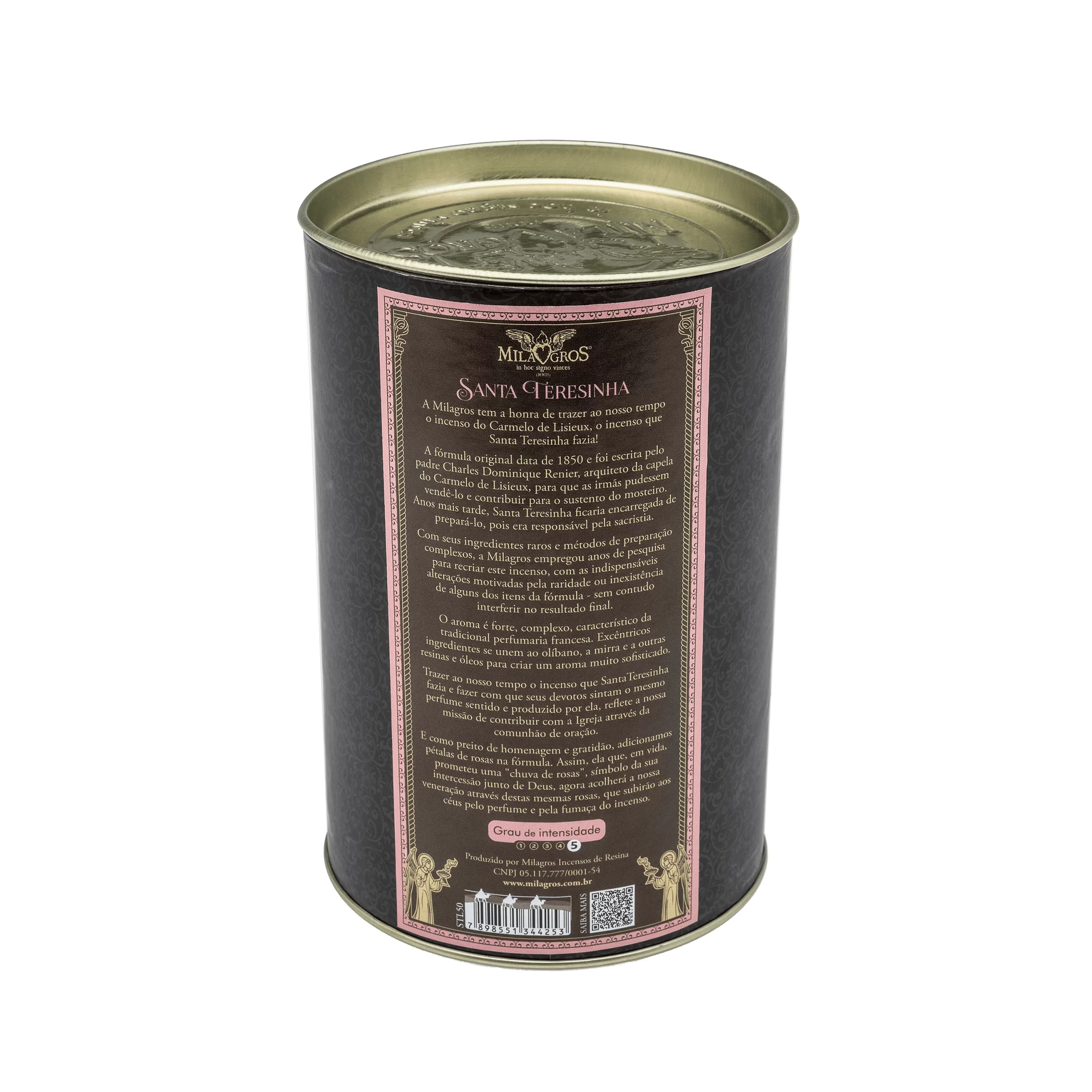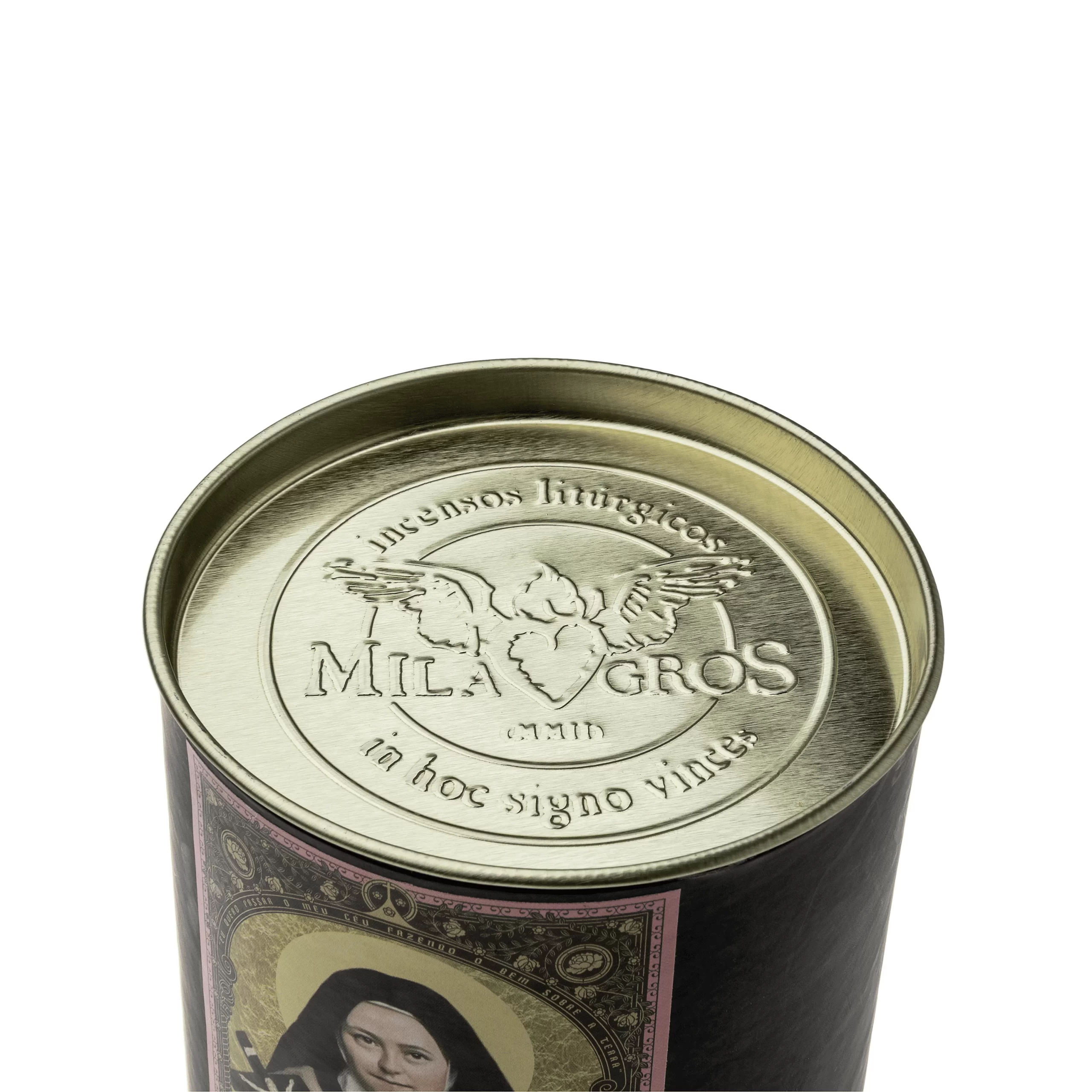 Com o objetivo de contribuir com a Igreja através da comunhão de oração, a Milagros resgatou o incenso que Santa Teresinha preparava, permitindo que seus devotos sintam o mesmo perfume sentido e produzido por ela. Como preito de homenagem e gratidão, pétalas de rosas foram adicionadas à fórmula, lembrando a "chuva de rosas" que a santa prometeu, símbolo de sua intercessão junto a Deus. Agora, a veneração ocorrerá através dessas rosas, que subirão aos céus pelo perfume e fumaça do incenso. Grau de intensidade: 4/5.